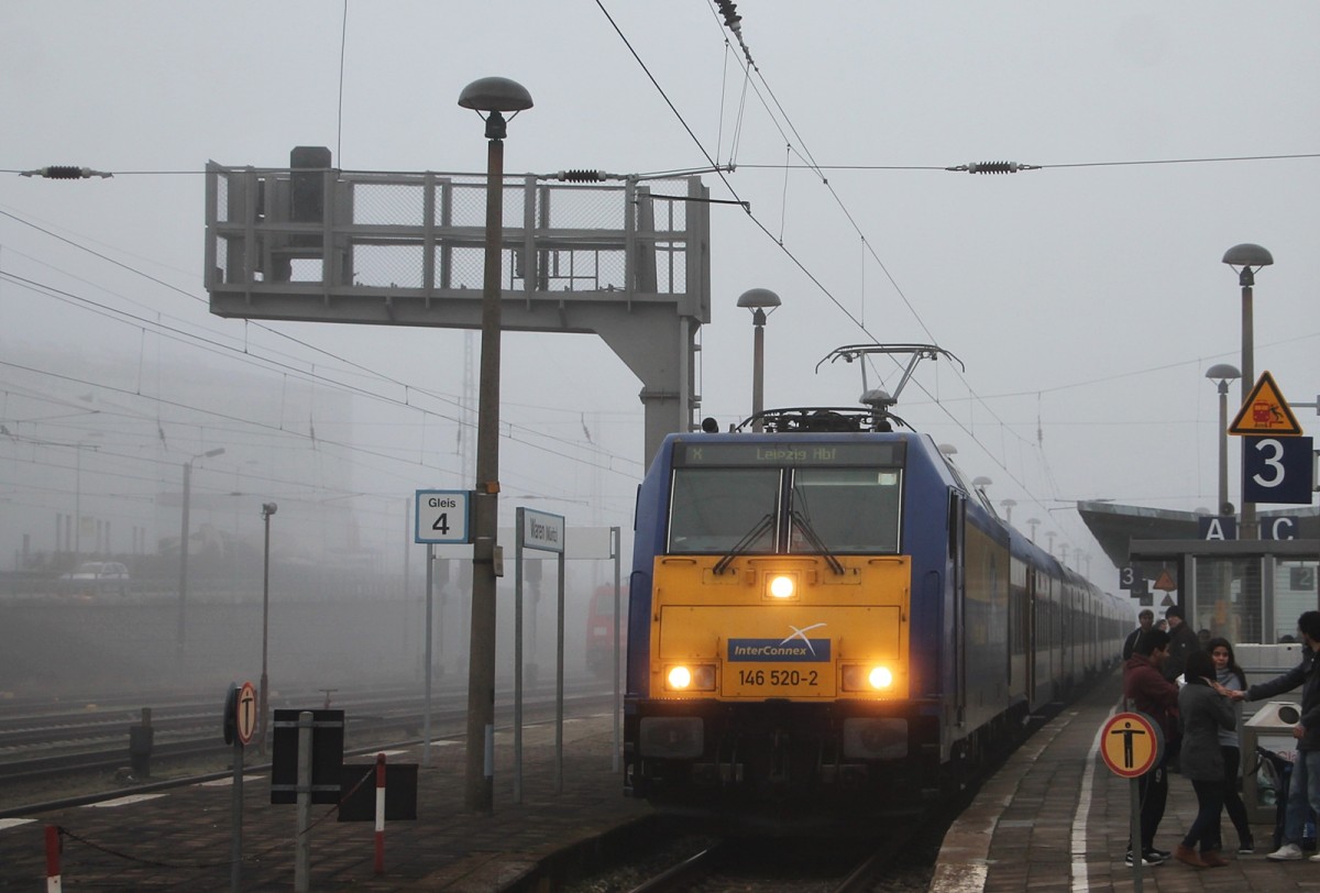 Die OLA 146 522 mit dem Interconnex in Warnemünde am 24.9.2011