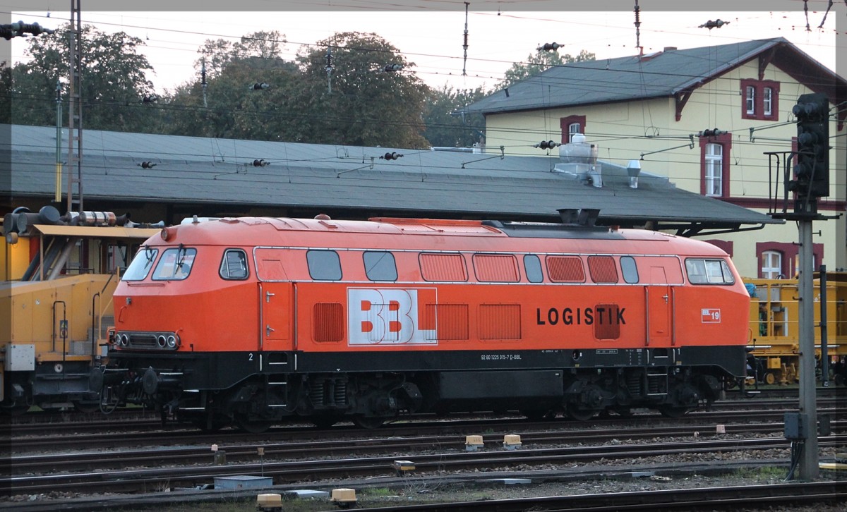 225 094 der EBM am Zugschluss bei der Durchfahrt durch Neustrelitz Hbf am 05.09.2015