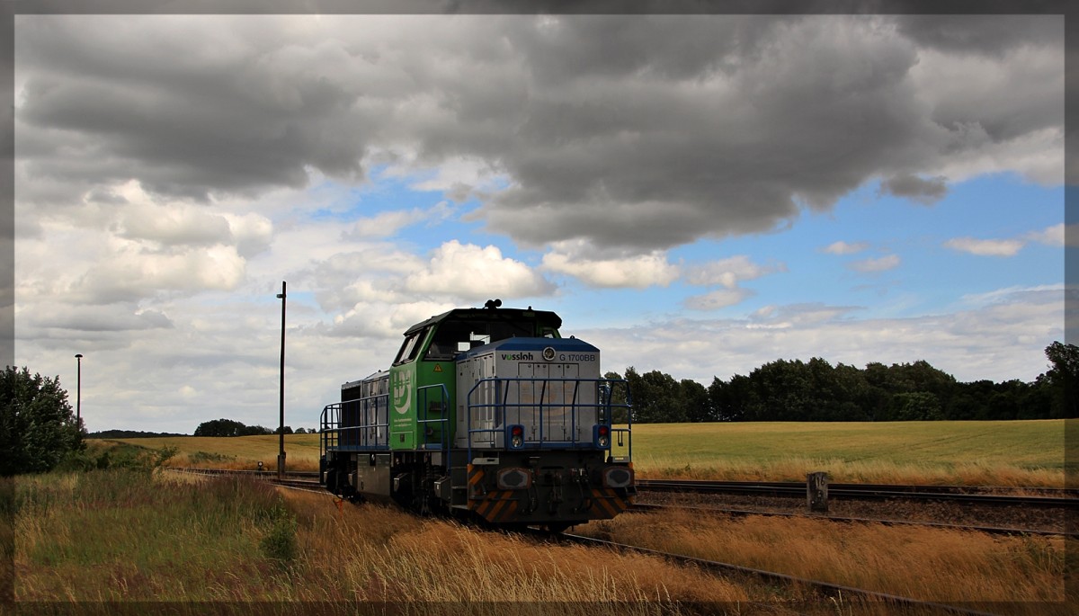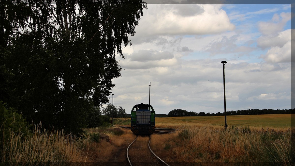 277 030 der LDS mit einem Schwellenzug von Möllenhagen auf dem Weg in Richtung Oranienburg in Neustrelitz Hbf am 01.10.2015